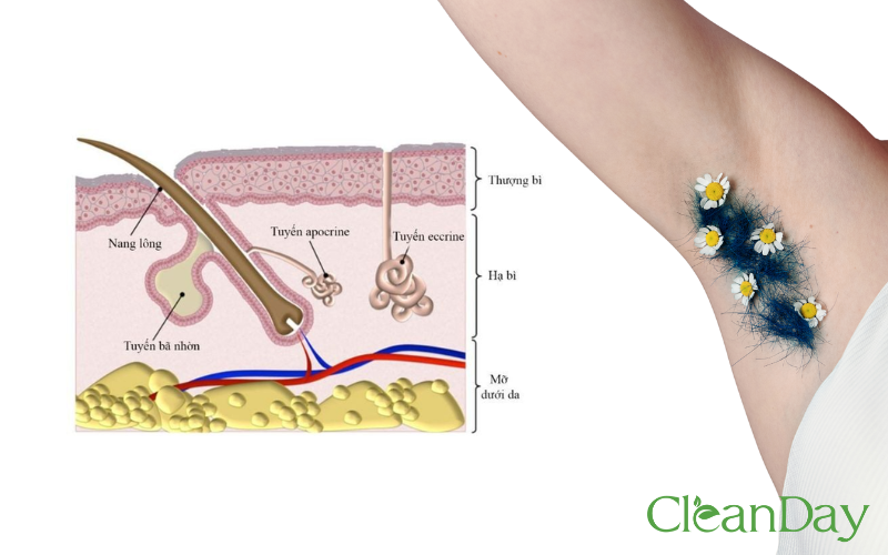 Để trả lời câu hỏi có nên cạo lông nách khi bị hôi hay không, trước hết cần hiểu rõ nguyên nhân hình thành mùi hôi nách. Trên cơ thể con người tồn tại hai loại tuyến mồ hôi chính: tuyến eccrine và tuyến apocrine. Tuyến eccrine phân bố khắp cơ thể, tiết mồ hôi chủ yếu là nước và muối để làm mát. Tuyến apocrine thì tập trung ở các vùng như nách, bẹn, ngực… và tiết ra dịch chứa protein, lipid, acid béo.