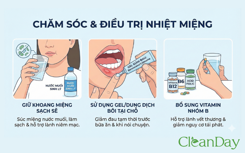 Khi bị nhiệt miệng, điều quan trọng là xử trí đúng cách ngay từ đầu: giữ vệ sinh miệng, giảm đau, bổ sung vi chất và điều chỉnh chế độ ăn uống – sinh hoạt. Phần lớn các vết loét sẽ tự lành sau vài ngày nếu được chăm sóc hợp lý. Tuy nhiên, với những trường hợp tái phát nhiều hoặc kéo dài, việc thăm khám chuyên khoa là cần thiết để tìm ra nguyên nhân và hướng điều trị phù hợp, giúp phòng ngừa tái phát về lâu dài.