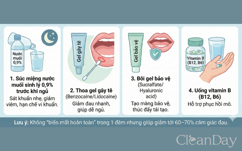Các gel gây tê cục bộ giúp giảm đau nhanh chóng, đặc biệt khi vết loét gây khó ngủ.