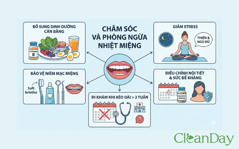 Mặc dù nhiệt miệng thường lành trong 7–10 ngày, người dễ tái phát có thể gặp lại từ vài lần mỗi năm. Một số thói quen giúp phòng ngừa hiệu quả: