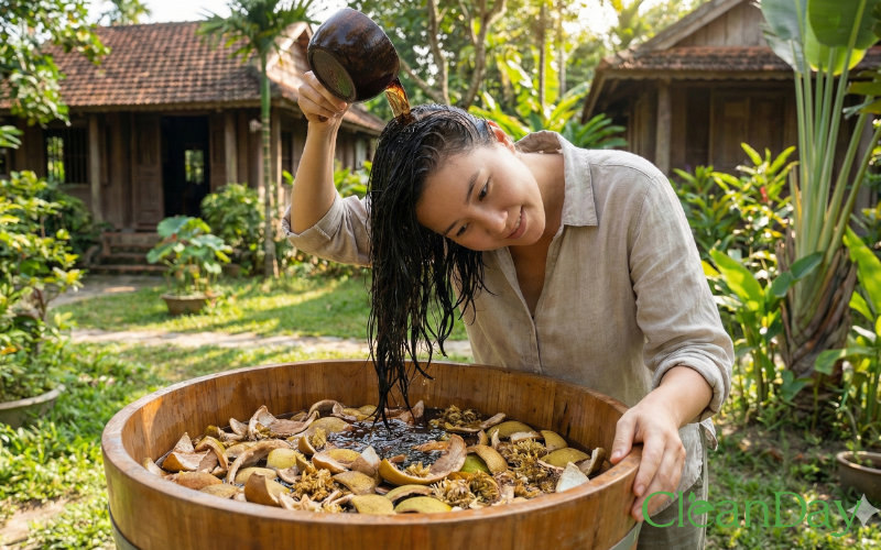 Nhiều người sử dụng nước nấu từ vỏ bưởi để gội đầu hoặc làm dung dịch xịt tóc, giúp tóc mềm mượt, giảm gãy rụng và có mùi thơm tự nhiên. Đặc tính kháng khuẩn của tinh dầu cũng giúp làm sạch da đầu, hỗ trợ giảm gàu và ngứa. Việc sử dụng vỏ bưởi trong chăm sóc tóc là một ví dụ điển hình cho sự giao thoa giữa kinh nghiệm dân gian và cơ sở khoa học hiện đại.