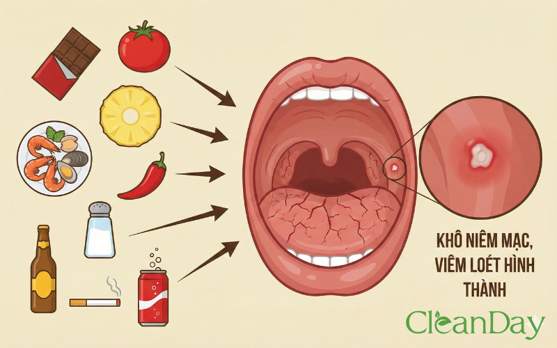 Nội tiết thay đổi không chỉ làm niêm mạc dễ viêm hơn mà còn ảnh hưởng đến miễn dịch, khiến vết loét dễ xuất hiện và kéo dài hơn bình thường.